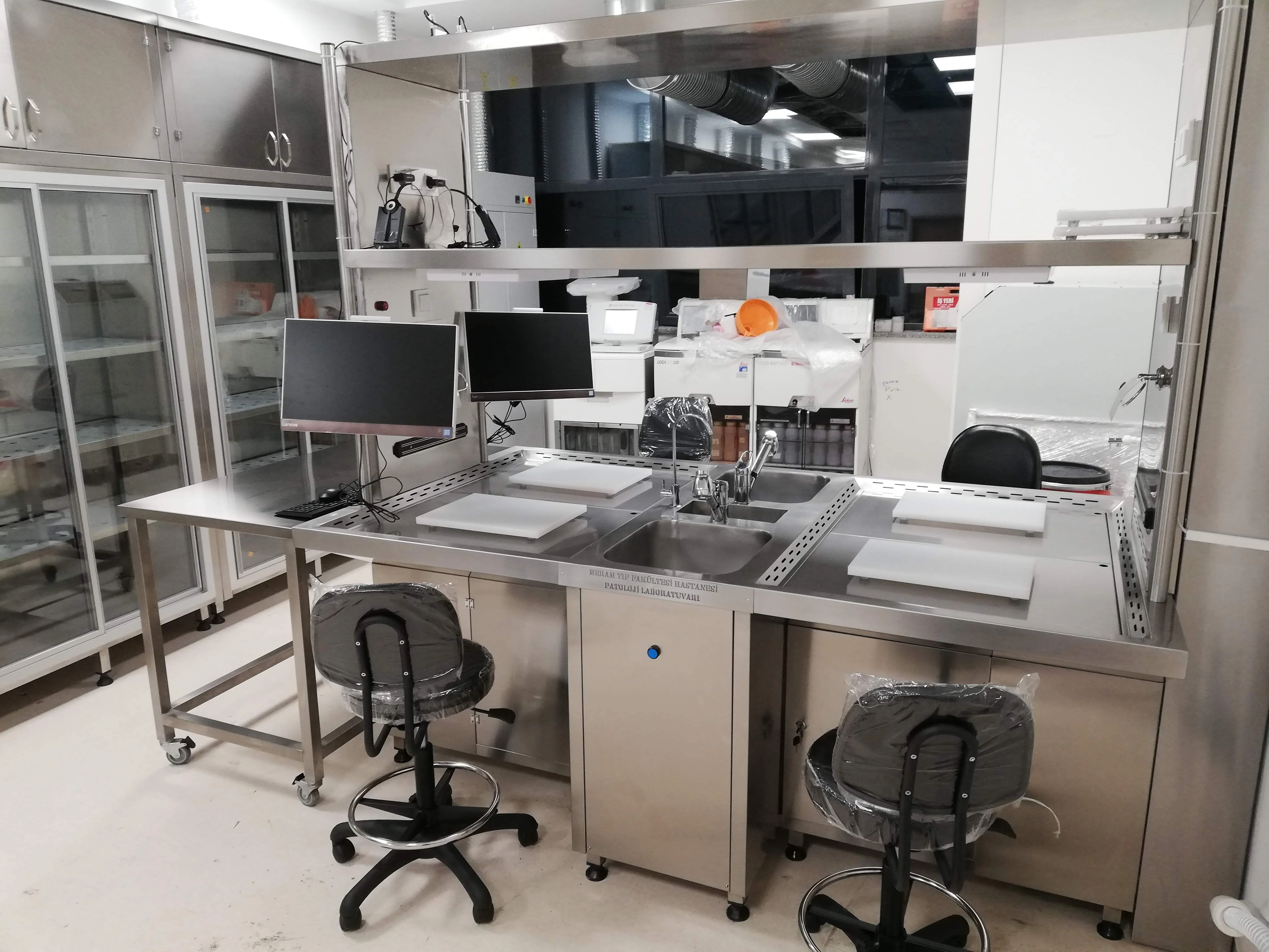 Makroskopi Kabini, Doku Saklama Dolabı, Boyama Kabini, Kimyasal Saklama Dolabı ve Formaldehit Dozajlama Cihazlarını kendi tasarlayıp üretiyoruz.